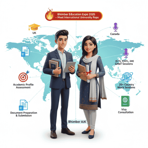 The upcoming bhimber study abroad expo 2025 will be a big event. It will offer direct interactions with university representatives. Students will get on-spot admission and sop guidance. This event will connect local talent with global opportunities, making university selection more accessible.