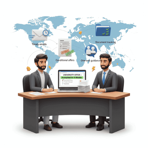 Good email manners and timely follow-ups can lead to quick acceptance. Sometimes, you can get accepted in just four weeks. Our counselors work with many universities to keep you updated quickly.