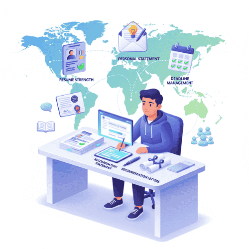 We guide you through every step, from planning to submission. We start with career counseling to set your goals. Then, we help with financial planning and finding scholarships.