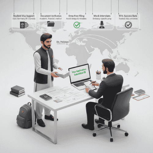 Our team is skilled in visa filing help Dir for many countries. We help you with every step, from the first forms to the final submission. Whether it’s for a USA student visa Dir or another country, we make your application stand out. We know what each country needs, including for a Germany study visa from Dir.