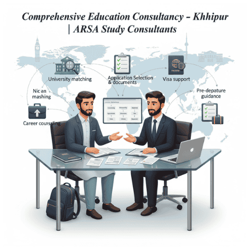 At ARSA Study Consultants, we know that going abroad for education needs careful planning. Our services in Khairpur offer full support from start to finish. We handle everything from the first counseling to getting you into a university.