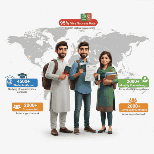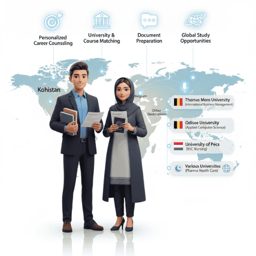 Their team of foreign study consultants helps Kohistan families. They get admission offers in just 4 weeks for most students.