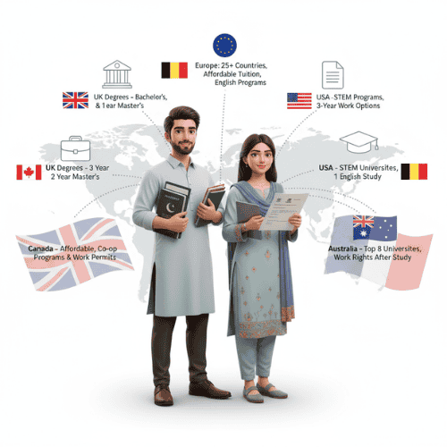Navigating international education can be tough. As top study abroad consultants in Mansehra, we make it easy. We use AI tools and human expertise to find the right universities for you in the UK, USA, Canada, Australia, and Europe.