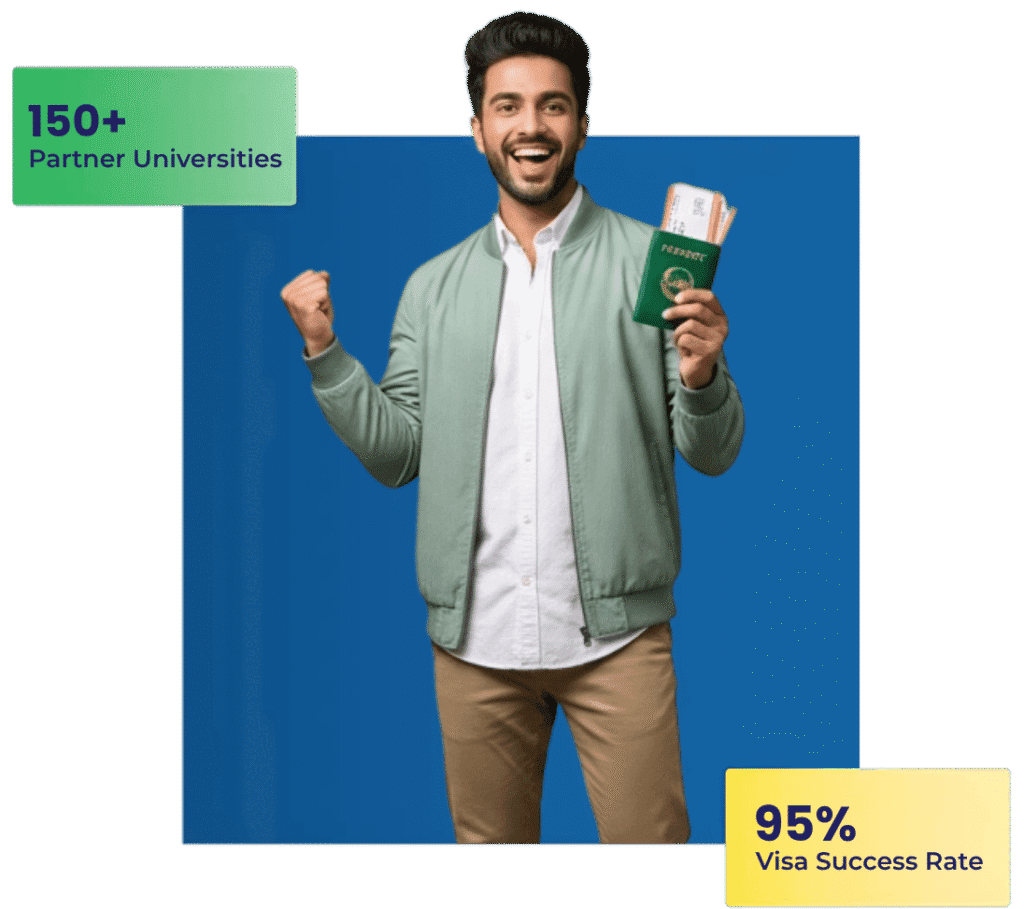 We’re an ICEF verified education partner (Agency Number 6015) with a 95% visa approval rate. Our services include personalized counselling and university selection from 500+ institutions across 25+ countries. We also handle visa processing and offer scholarship support.