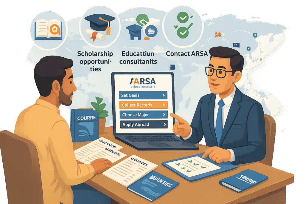 Start your global journey by setting personal goals. Think about your talents and what you’re curious about. Our team at ARSA Study Consultants will help you create a clear plan, making each step meaningful and exciting.