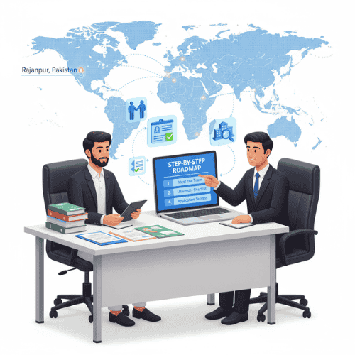 Some students find their ideal spot by studying in Australia from Pakistan or studying in Belgium from Pakistan. We provide scholarship guidance rajanpur and specialized admission guidance rajanpur to boost your application. You can look at many places, each with its own post-graduation chances. We’re here to help you find the best match for your goals, interests, and lifestyle.