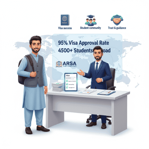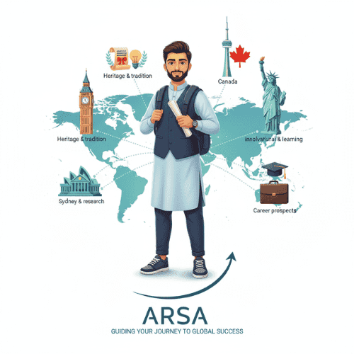 We think you should have a top-notch guide on this path. Our team at ARSA Study Consultants is here to help. We’ll guide you through finding the right degree, getting ready for exams, and making the application process easier. You can find us in Lahore or call or email us for one-on-one help.